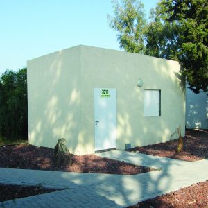 Konstruktion eines großen, spezialisierten mit Stein verkleideten, mobilen Schutzraums für ein Hi-Tech-Unternehmen im Süden Israels